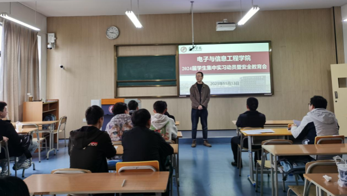11月13日上午,beat365正版唯一官网必一1号教学楼1308教室召开了2024届毕业生集中实习动员暨安全教育培训会。会议由学院副院长宋权华主持,学院党总支副书记蔡正旺、实习班级辅导员张宇航、实习带队教师邬子逸以及参加本次集中实习的全体学生参加了会议。