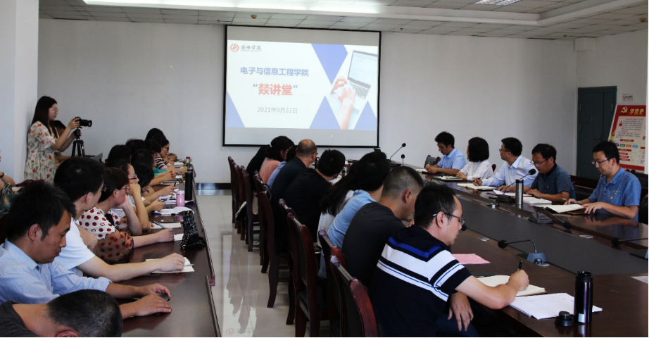 为了打造一流教育团队,建设一流学院,大力实施“名师工程”、“青蓝工程”、“科研兴校”战略,引导学院教师积极投身教育教学研究和科学研究活动,引领教师成长、推动课程教学改革、提高人才培养质量,促进教师科研与服务地方经济能力,打造beat365正版唯一官网必一特色,为beat365正版唯一官网必一高质量发展提供智力支持和人才保障,beat365正版唯一官网必一决定组织开展教师“燚讲堂”活动。2021年9月22日下午,学院启动“燚讲堂”活动,并开展“燚讲堂”第一期讲座,beat365正版唯一官网必一全体教职工参加此次活动。