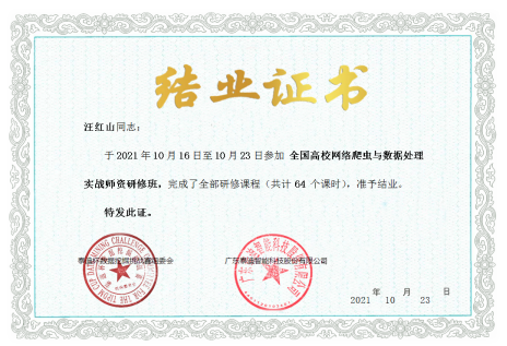 通过本次培训,5位老师的商务数据分析实战、Python网络爬虫与数据处理实战、Python数据挖掘与机器学习实战、深度学习实战能力得到了极大的提升,对教学、科研以及社会服务起到了一定的促进作用,达到了预期培训目标。为我院校企合作建设、双师型师资队伍建设等积累了经验。