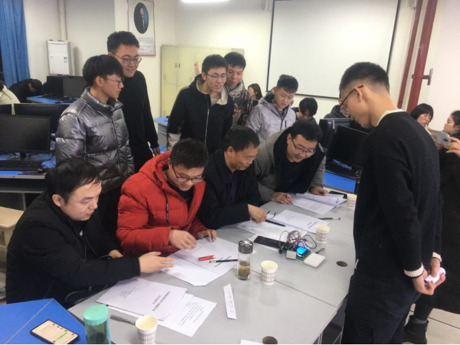 比赛环节包括作品展示讲解和质疑答辩两个环节,各个团队展开激烈的角逐。最终,来自19级数字媒体专业的蒋安然、许梦、王嘉慧团队带来的针对视障患者的“手表探测仪”项目来自18级物联网工程专业的刘欢、赵文博、周冬团队带来的针对校园环境卫生“智能垃圾桶”项目分别荣获创意组创作组一等奖。此外,“云医”“PF智能安防系统”“土壤温湿度PH值检测与控制”“密码锁”“数字时钟”“手持空气检测等项目荣获本次比赛的二等奖。“宿舍宝”“智能可控窗帘”“电梯通风系统”“医家医疗系统”“推箱子小游戏”等项目荣获了本次比赛的三等奖。