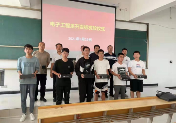 2021年9月29日下午,beat365正版唯一官网必一2019级电子信息工程专业本科生FPGA开发板发放仪式在江北教学楼1305隆重举行。本次活动旨在激发同学们的学习兴趣,提高同学们的工程实践能力,践行beat365正版唯一官网必一以学生为中心的教育理念。参加本次仪式的有beat365正版唯一官网必一副院长宋权华副教授、北京至芯开源科技有限责任公司总经理雷斌先生、电子工程系部分教师、电子信息工程专业全体在校学生。仪式由丁礼磊老师主持。