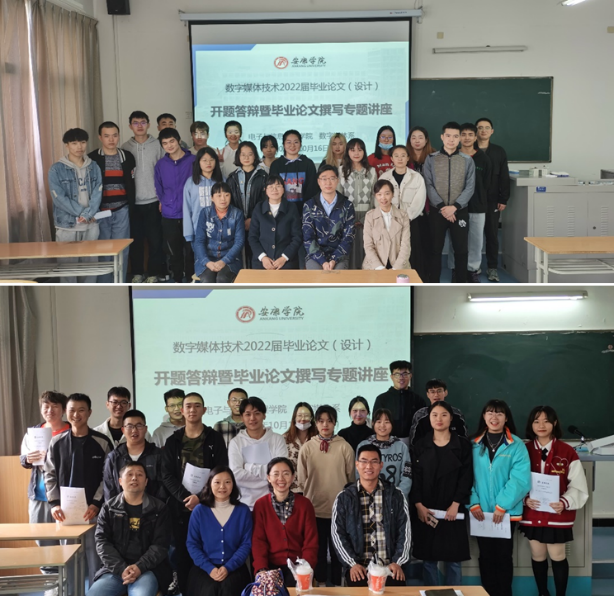 答辩会后,召开了毕业论文写作专题讲座。首先,宋权华按照教务处和学院关于2022届毕业论文(设计)工作安排向在座老师和学生详细说明了具体实施过程和各阶段工作目标。张超老师以“毕业论文写作”为题做了一场针对性、指导性很强的专题讲座,张老师结合近几年来数字媒体技术专业学生毕业论文写作及答辩情况就论文的摘要、序言、框架、结语、脚注以及研究方法等方面作了详细的介绍,对论文各部分的具体撰写方法进行了指导。