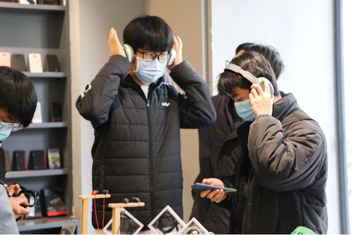 接着,在公司生产负责人的带领下,同学们参观了智能无线耳机、智能音响、智能移动电源等产品的生产一线。