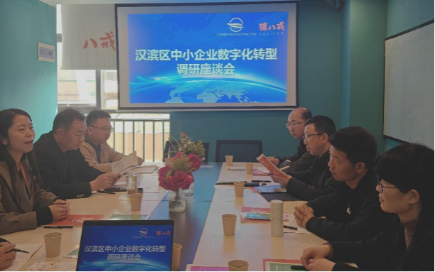 随后,调研组实地走访了八戒工场(安康)等相关企业,并召开汉滨区中小企业数字化转型调研座谈会。座谈会上,八戒工场负责人介绍了公司相关情况、企业一站式业务和目前企业发展面临的问题,安康市蓝思电子商务有限公司和陕西安康易捷网络科技有限公司的企业代表分别围绕数字化业务开展、服务对象、资源整合、政策扶持、人才供需等问题进行发言。