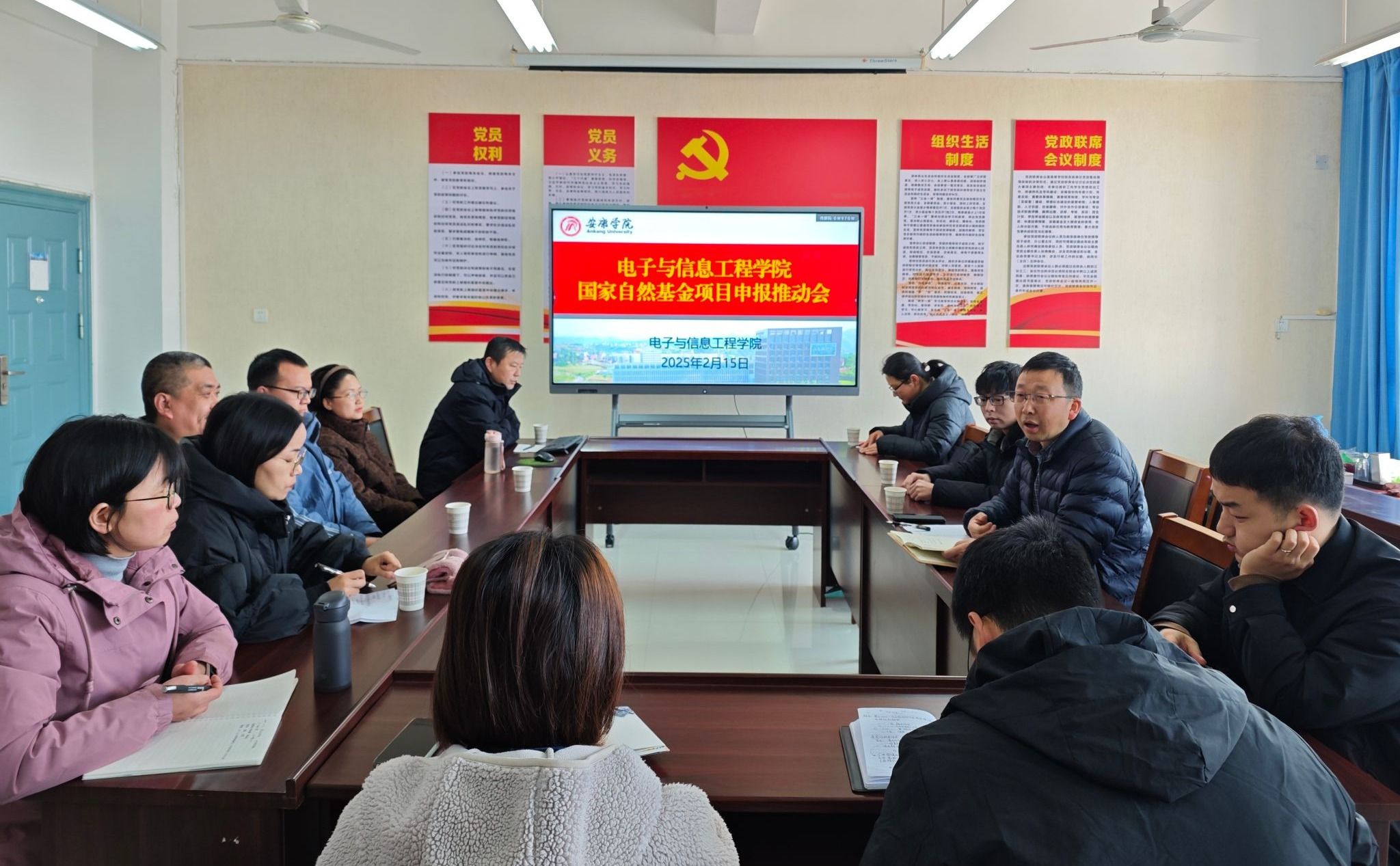 为扎实推进2025年度国家自然科学基金申报工作,全面提升申报书质量,2025年2月15日上午,beat365正版唯一官网必一召开2025年度国家自然科学基金项目申报第三轮推动会。本次会议聚焦申报材料的终稿优化与专家评审,旨在通过精准指导与团队协作,争取在2025年度国家自然科学基金申报中取得优异成绩。申请国家自然科学基金项目多位博士参加会议,副院长王克刚主持会议。