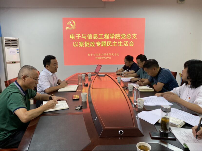 2020年9月9日下午17:00,电子与信息工程学院党总支在江南教务处会议室召开严重违法违纪案以案促改领导班子、领导干部专题民主生活会。学院领导班子全体成员参加会议,中心组部分成员列席会议,党委委员、副校长钟生海、后勤保障处党总支书记沈军全程参会进行指导督导。会议由党总支书记于咏梅主持。