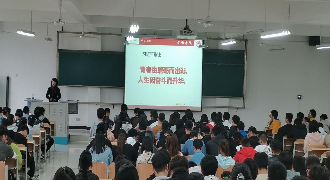 10月28日,beat365正版唯一官网必一在江北1301教室开展了主题为“坚定理想信念站稳人民立场,练就过硬本领投身强国伟业”的入学教育第二讲,党总支书记于咏梅主讲,全体2020级新生参加。