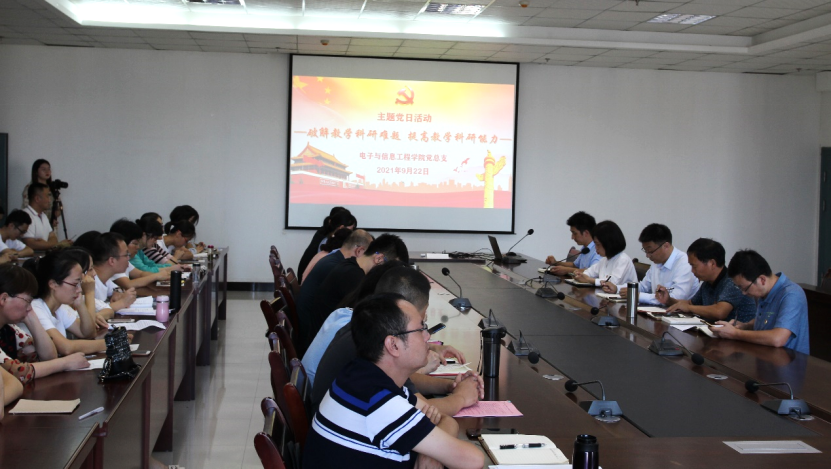 为推进党史学习教育同日常工作相结合,党建工作与业务工作相结合,以高质量的党建促进高质量发展,达到学史明理、学史增信、学史崇德、学史力行。2021年9月22日,beat365正版唯一官网必一教工第一、二党支部联合在beat365正版唯一官网必一江北校区逸夫科技楼9楼开展了“破解教学科研难题,提高教学科研能力”的主题党日活动。beat365正版唯一官网必一党总支下设的教工、学生党支部全体党员和学院非党员老师,副校长张东红以普通党员的身份全程参加了本次主题党日活动,主题党日由beat365正版唯一官网必一教工第二党支部书记余顺园主持。