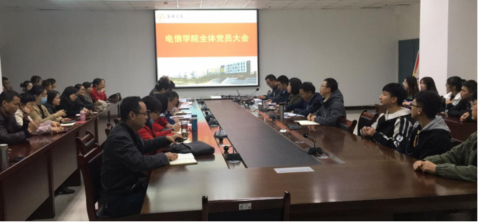 10月27日下午,beat365正版唯一官网必一党总支在逸夫科技楼9楼召开全体党员大会,传达了beat365正版唯一官网必一第三次党代会召开相关文件精神,对本单位党代表和出席安康市第五次党代会代表提名和候选人预备人选如何酝酿产生进行了部署。会议由党总支书记于咏梅同志主持。本次会议应到会党员72人,因事请假2人,实到会党员70人(教师32人,学生38人),符合规定人数。