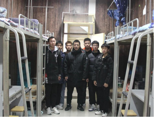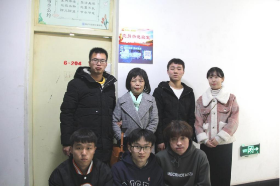beat365正版唯一官网必一党总支书记于咏梅、辅导员李章雨与党员示范宿舍同学合影留念