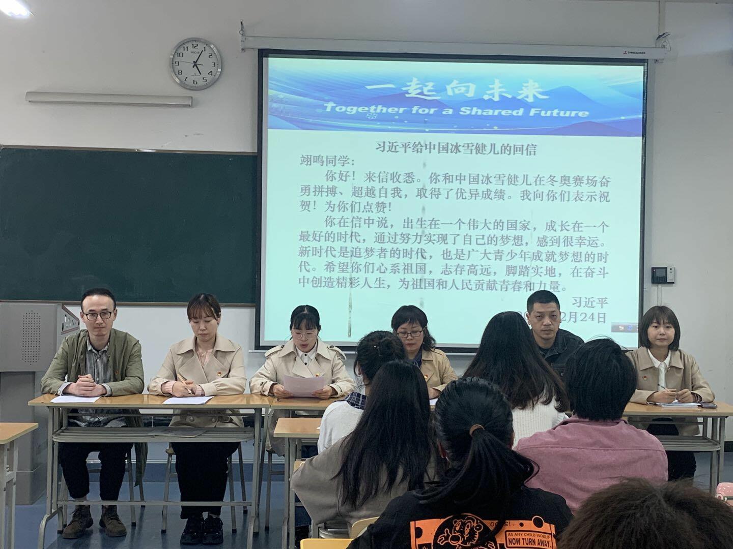 学生第二党支部中共预备党员李思雨:习近平总书记回信冰雪健儿,充分表达对冰雪健儿取得优异成绩的祝贺和赞扬,并强调了青年对于一个国家的重要意义——“新时代是追梦者的时代,是广大青少年成就梦想的时代”。我作为一名大学生,一名新时代的青年,我们应该深刻认识到读书并不仅仅是为了个人的发展,更是为了报效祖国,应将“个人梦”融入“中国梦”,志存高远,发扬“使命在肩,奋斗有我”的精神,在今后的学习、生活中,脚踏实地,奋勇争先。