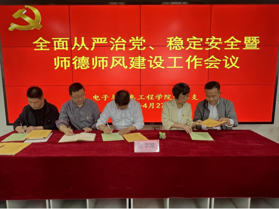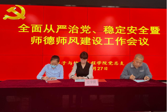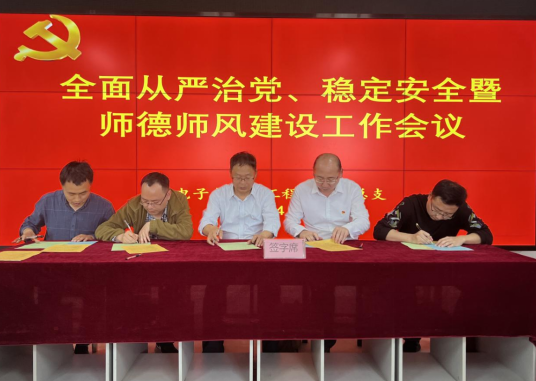 会议中,院长陈守满、党总支书记于咏梅、副院长王克刚分别与领导班子成员、党支部、学工办、系(教研室)、综合办、实验室教师代表签订全面从严治党、稳定安全和意识形态工作责任书;教师代表签订意识形态工作承诺书、师德师风承诺书。