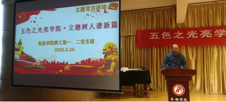 为庆祝中国共产主义青年团成立100周年,喜迎中国共产党第二十次全国代表大会即将召开,落实立德树人根本任务,加强师德师风建设,提高教师党员立德树人使命感,5月26日下午2:30分在江北1401演艺厅,beat365正版唯一官网必一教工第一、二党支部联合开展了“五色之光亮学院,立德树人谱新篇”主题党日活动。主题党日活动由教工第一党支部书记赵志强主持。以此活动为契机,深入学习研究,把握和运用习近平总书记关于教育的重要论述,激发教师加强自身修养,树立高尚品德,引导和激励青年坚定理想信念,以思想价值教育引领学风建设,培养德智体美劳全面发展的社会主义建设者和接班人。