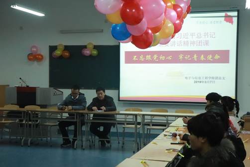 2019年3月7日晚,beat365正版唯一官网必一组织了“不忘跟党初心 牢记青春使命”学习习近平总书记系列重要讲话精神团课活动,参加活动的有beat365正版唯一官网必一党总支书记何道利、团总支书记陈浩以及beat365正版唯一官网必一全体团总支成员。
