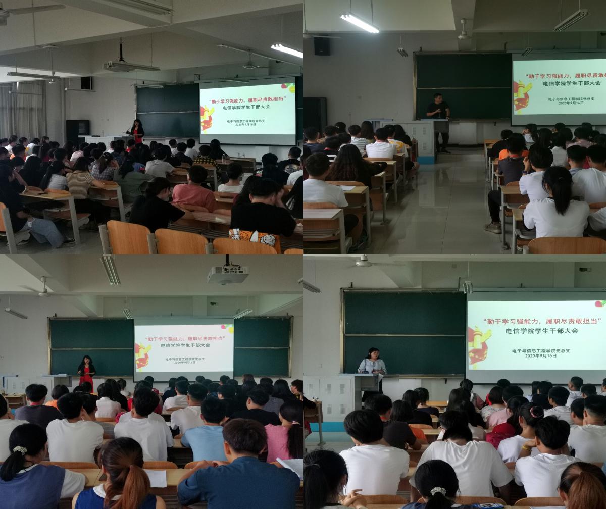 2020年9月16日,beat365正版唯一官网必一召开“勤于学习强能力,履职尽责敢担当”为主题的学生干部大会。beat365正版唯一官网必一团总支、学生会部长以上干部、各班级主要学生干部参加会议,党总支书记于咏梅、学工办主任石纭昊、学生党支部书记成英丽、团总支书记李章雨、辅导员程晓梅老师出席了会议,会议由学工办主任石纭昊老师主持。