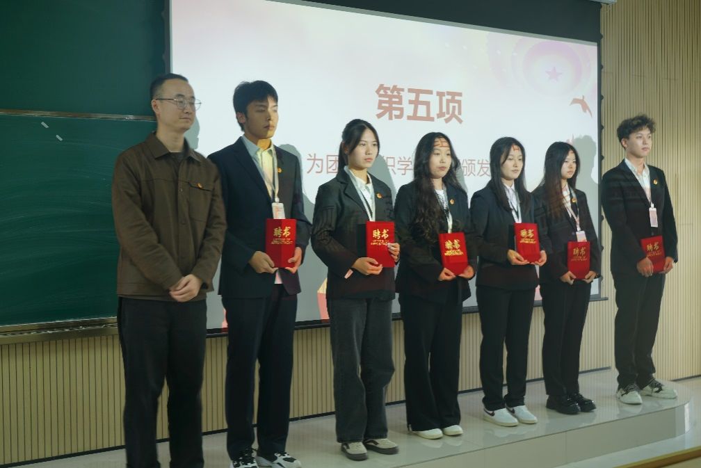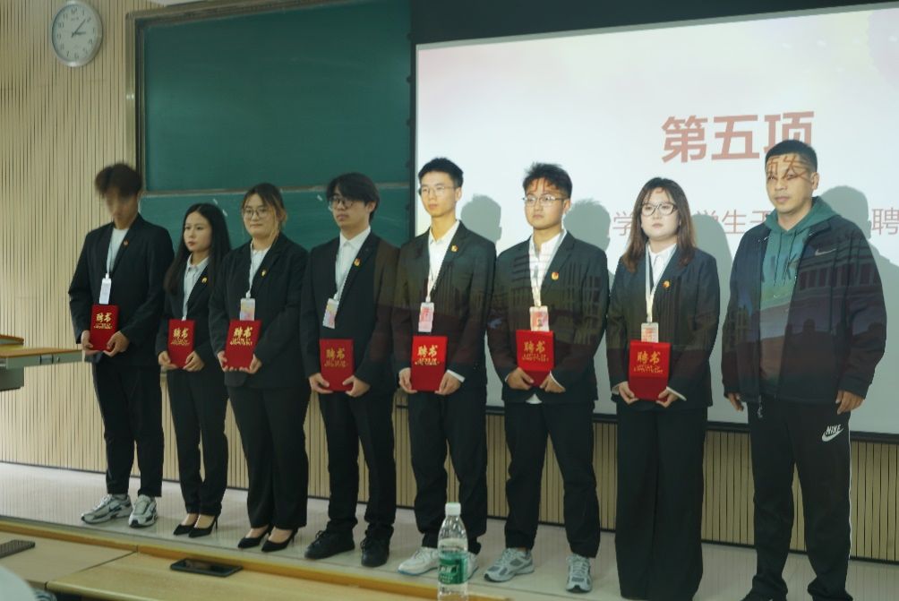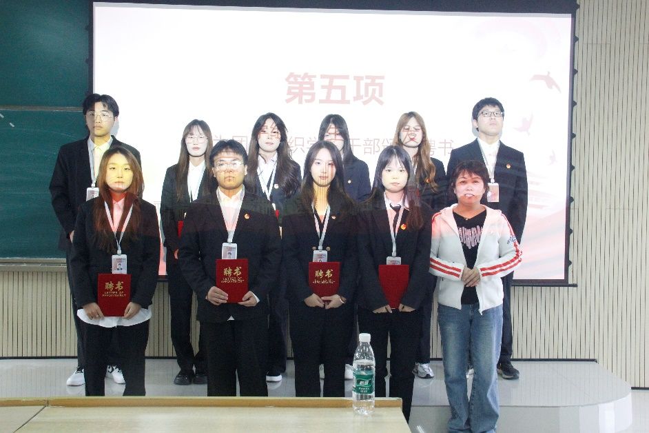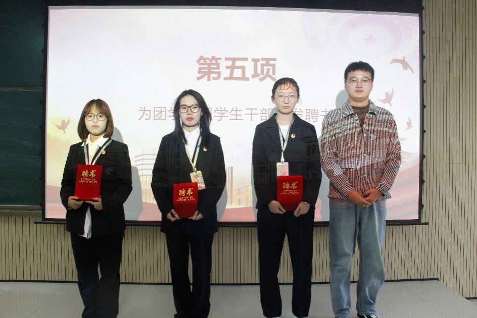 接着由团总支书记张宇航,学工办主任石纭昊,辅导员成英丽,辅导员贾金兵为beat365正版唯一官网必一学生组织各部门负责人颁发聘书,之后由团学组织干部向各部门干事进行授牌。同时,在学生分会轮值主席赵晓羽的带领下,第37届学生组织全体干部庄严宣誓,坚定了全心全意为同学服务,为beat365正版唯一官网必一高质量发展挺膺担当的决心。