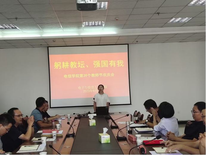 2023年9月10日是第39个教师节,也是党的二十大胜利召开后的第一个教师节。为贯彻落实立德树人根本任务,展现beat365正版唯一官网必一教师自信自强的精神面貌,营造尊师重教的良好氛围,激励广大教职工积极投身教育强国建设,beat365正版唯一官网必一工会分会于2023年9月6日举办了“躬耕教坛、强国有我”为主题的教师节活动。本次活动由beat365正版唯一官网必一分会主席陈颖博主持。