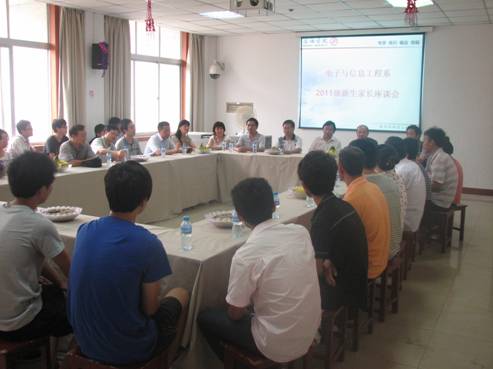 9月4号下午,电子与信息工程系在1429召开新生家长座谈会,电信系系领导、两办主任、教研室主任、辅导员、教学秘书和部分新生家长及新生代表参加了会议。会议由系总支书记李红兵主持。