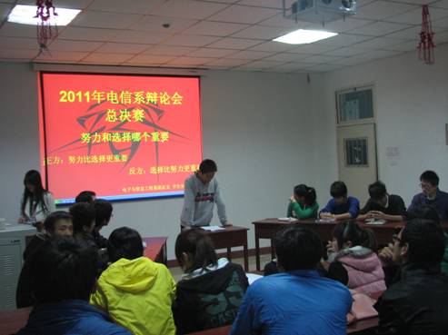 10月27日晚,电子信息工程系团总支在1429室举行beat365正版唯一官网必一2011年金雀杯精英辩论赛系内选拔赛决赛。