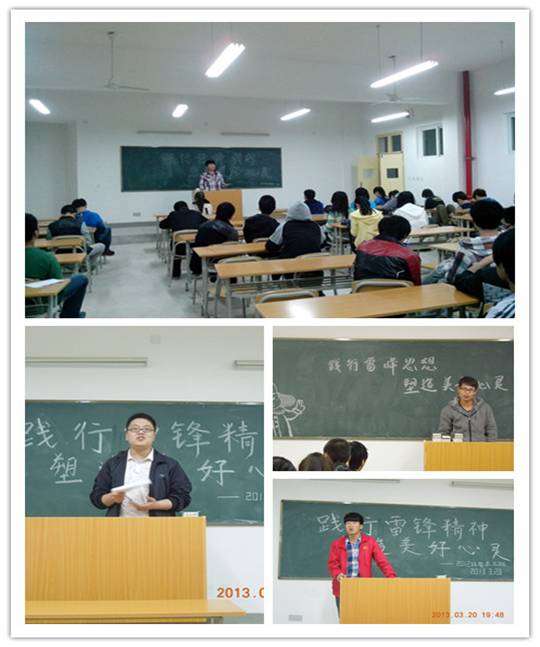 利用学雷锋活动月对全系同学开展“践行雷锋精神 塑造美丽心灵”的教育活动,利用板报进行宣传,通过板报,号召全体学生积极参加学雷锋实践活动,弘扬“团结、友爱、互助、奉献”的雷锋精神。