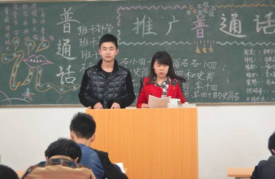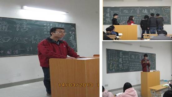各班召开以“说普通话,写规范字,做一名优秀有气质的大学生”为主题的班会,积极制作展板进行宣传,让大家明白作为一名大学生应该具备的素质和气质。