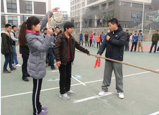 2013年12月8日,电子与信息工程系在江北校区篮球场举行学生干部趣味运动会,出席活动的老师有系党总支书记李红兵、团总支书记石纭昊以及辅导员王贵新。