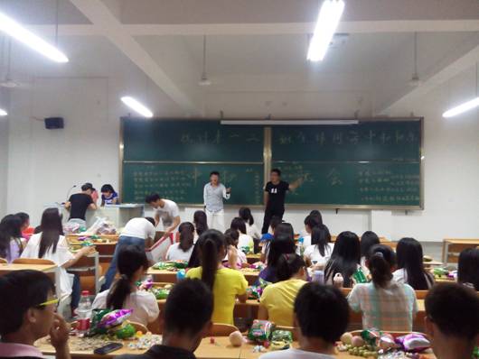 9月8日晚,电信系2014级新生以专业为单位举行了中秋联欢晚会。晚会上,新生活力四射,精彩节目一个接着一个,歌曲、舞蹈、小品、双簧……各出新裁,才艺尽展,同学们大饱眼福。大家彼此祝福,彼此调侃,充分沐浴着这个大家庭带给大家的幸福,整个会场都沸腾了起来,欢叫声、叹息声此起彼伏。 最后在悠悠的歌声中,同学们一起吃月饼,一起吃糖果,一起赏月。那一晚,同学们都深深地懂得了电信系就是我们温暖的家,电信系的同学们是我们情同手足的兄弟姐妹!