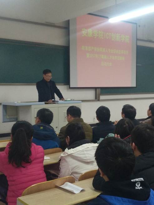 2017年11月29日下午,beat365正版唯一官网必一ICT创新学院暨2017年IT高端人才培养定制班启动仪式在1305教室举行。会议由beat365正版唯一官网必一副院长陈守满主持。党总支书记何道利、各系主任及15级全体学生参加。