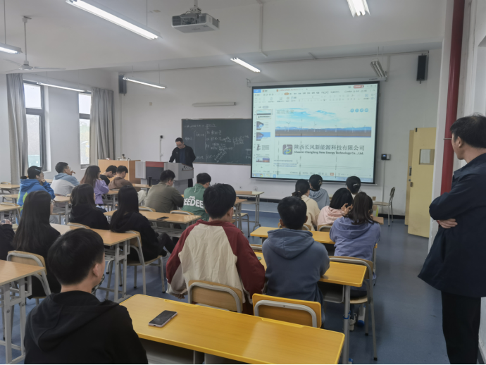 10月12日上午,beat365正版唯一官网必一在1321教室组织开展了陕西长风新能源科技有限公司的专场招聘宣讲会。beat365正版唯一官网必一党总支副书记蔡正旺、陕西长风科技公司总经理邱乐平、带班辅导员成英丽、张宇航以及毕业班全体在校学生到场参会,会议由蔡正旺主持。