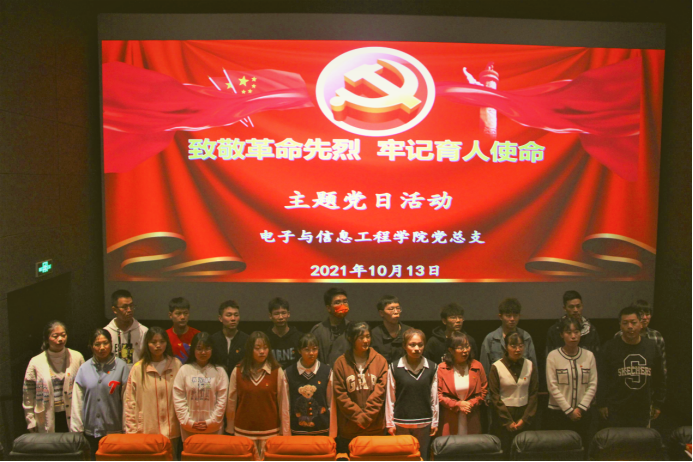 为进一步扎实推进党史学习教育,从百年党史中汲取奋进力量,2021年10月13日下午,beat365正版唯一官网必一学生第一、二党支部在支部书记程晓梅、李章雨老师的带领下,在万乐城影院联合开展了“致敬革命先烈、牢记育人使命”主题党日活动,集体观看抗美援朝题材电影《长津湖》,支委成员及全体在校学生党员参加了此次活动。