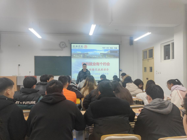 2021年12月11日下午,beat365正版唯一官网必一在江北校区教学楼1318教室召开了“我和就业有个约会”为主题的就业经验交流座谈会。此次交流座谈会邀请了2018级两名已经成功就业的学生分享他们的求职经历,电子信息工程专业的毕业班全部学生参加了此次会议。会议由辅导员成英丽老师主持。