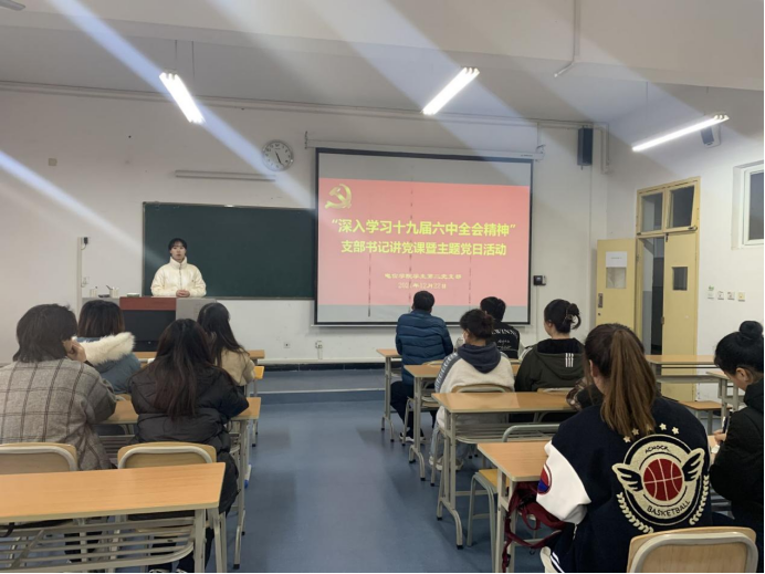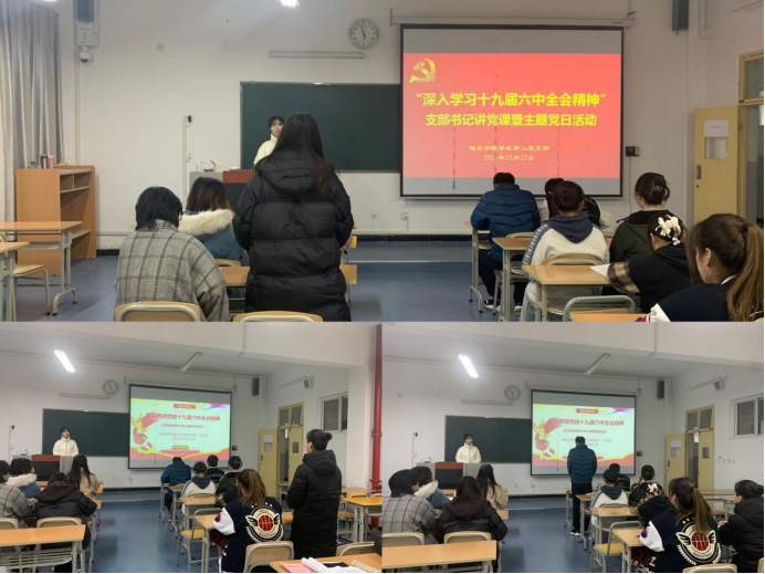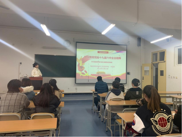 2021年12月22日下午,beat365正版唯一官网必一学生第二党支部在一号教学楼1321教室组织召开党员大会,支部书记李章雨老师为全体党员讲授了“深入学习十九届六中全会精神”专题党课,党支部支委、全体在校党员、新一期发展对象参加了此次活动。