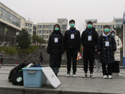 志愿者在教学楼前随时待命