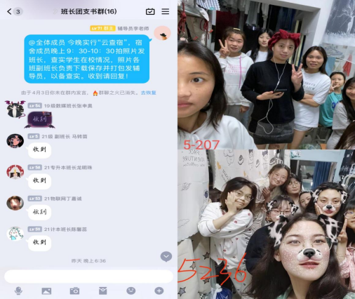 此次宿舍检查,各班辅导员重点强调了在假期管理期间,希望同学们加强自我管理,各宿舍垃圾及时清理,避免宿舍门口的垃圾堆积;加强宿舍通风:保持宿舍室内空气流通,无异味,每日开窗通风至少两次,每次30分钟以上;保持宿舍卫生干净,桌面整洁,物品摆放有序。引导同学们注重日常卫生的保持,创建优良宿舍生活学习环境。疫情之下,花式的查宿形式也为同学们的宿舍生活增添了许多色彩。