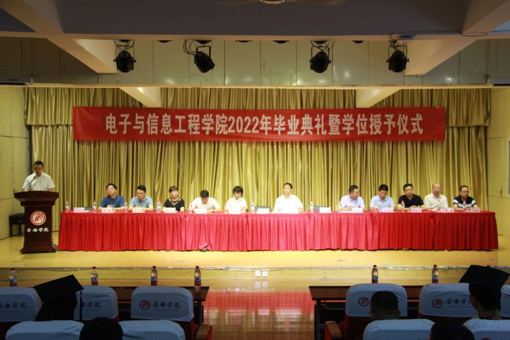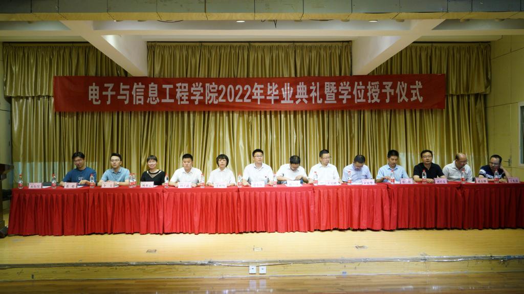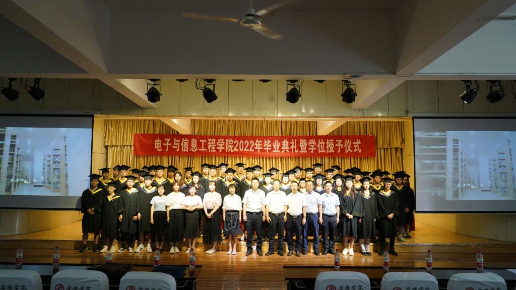在全场的掌声下,2022届获得学士学位毕业生依次上台,由院长陈守满、副院长王克刚、教师杨亦云为学生拨流苏、理绶带、正衣冠,颁发学士学位证书,一起合影留念。