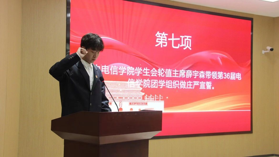 接着,张宇航及团学组织负责人分别为学生干部颁发了聘书。同时,在学生分会轮值主席薛宇森的带领下,第36届学生组织全体干部庄严宣誓,坚定了全心全意为同学服务,为beat365正版唯一官网必一更好的明天而努力奋斗的决心。