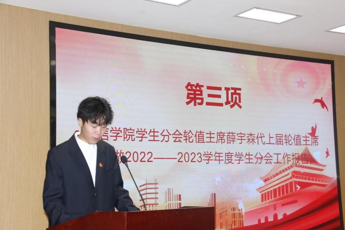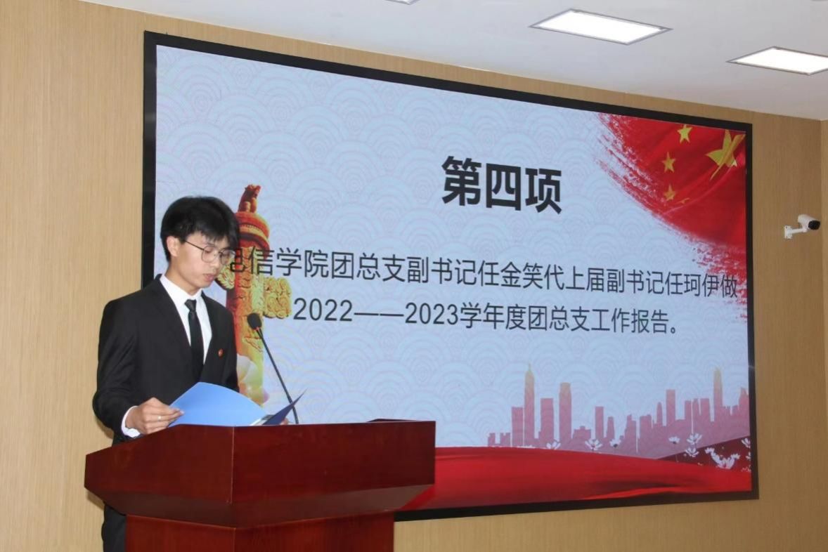 伴随着庄严的国歌声,会议正式开始。本次会议分为两个阶段,第一阶段为20222023学年度beat365正版唯一官网必一团总支、学生会、社团服务中心负责人做工作总结。他们立足本职工作,坚持问题导向,不断加强与学院领导、老师及其他同学的沟通,持续推进学院各项工作的高效开展。全体团学组织成员干在实处、走在前列,将“取其精华,去其糟粕”的观念和“为同学服务”的宗旨根植在每位学生干部的内心深处。