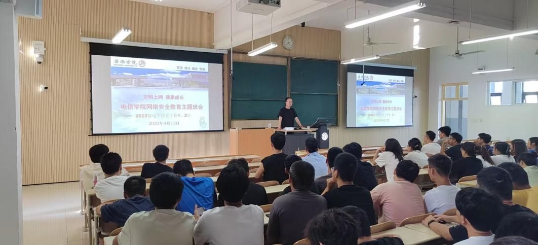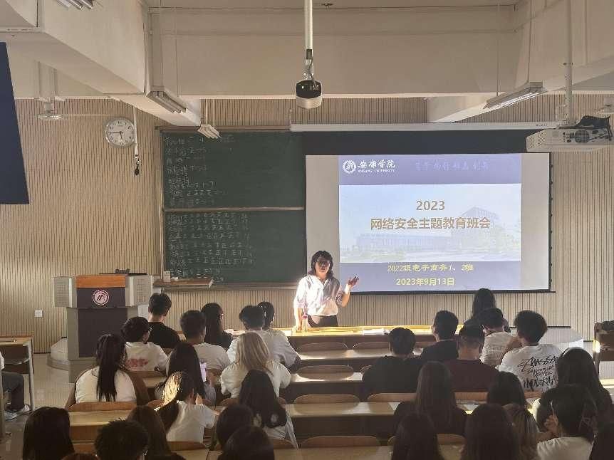 为了提高学生的网络安全意识,加强学生在网上有足够的警惕心和较高的辨别能力,避免迷失自我,陷入危机,提高同学们分辨网络安全隐患的能力、正确使用网络资源的能力、合理使用网络的自控能力,了解到当前网络新型违法犯罪,切实提高防范意识,有效减少此类案件的发生。2023年9月13日,信息化建设与管理处黄长江、beat365正版唯一官网必一辅导员老师石纭昊、成英丽、张宇航、李章雨、翟子轩分别为beat365正版唯一官网必一各班级开展了以“网络安全”为主题的班会活动。