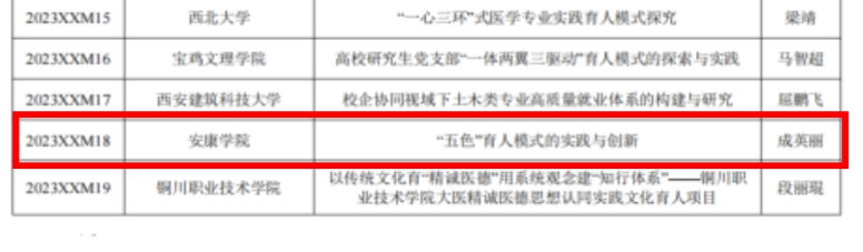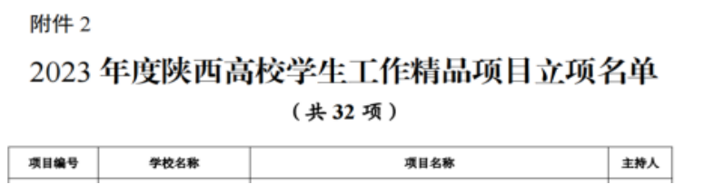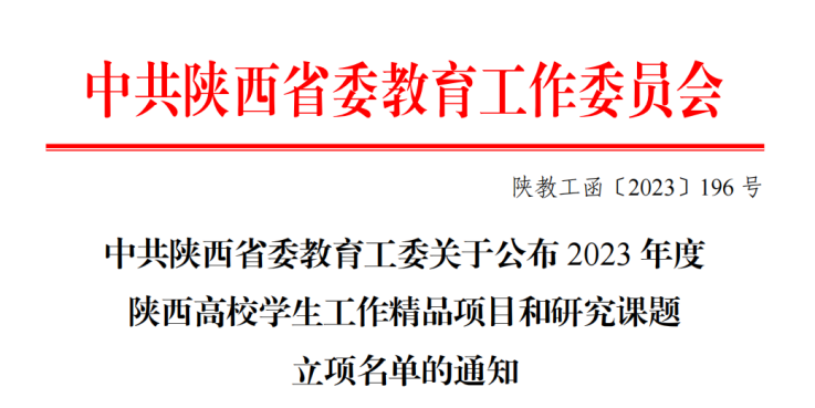 近日,中共陕西省委教育工委公布了2023年度陕西高校学生工作精品项目和研究课题立项名单,beat365正版唯一官网必一辅导员成英丽副教授主持的《“五色”育人模式的实践与创新》获批陕西高校辅导员工作精品项目立项。该项目组成员有学院党总支书记于咏梅,学工办主任石纭昊,辅导员张宇航、吕以宁和李章雨。