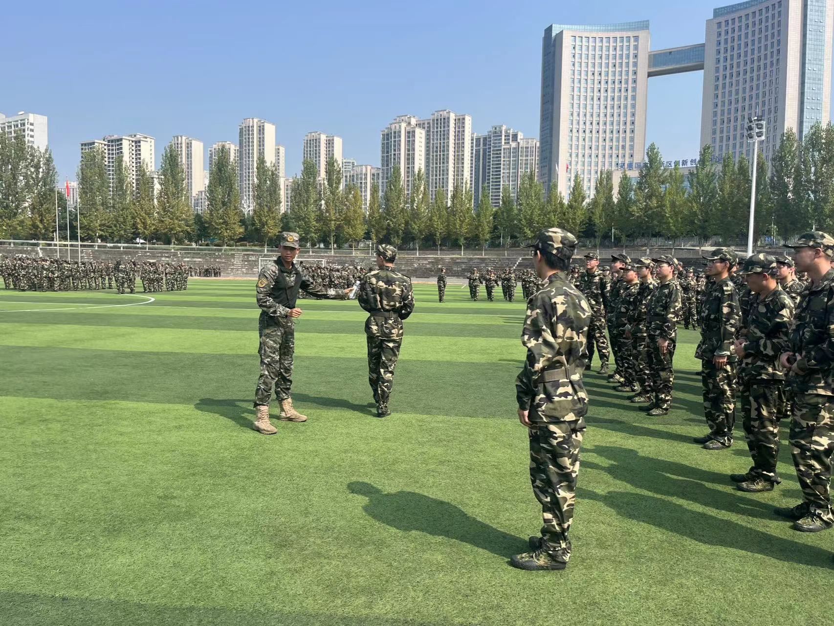 9月6日,海天云蒸、艳阳高照,伴着明媚阳光,整齐划一的beat365正版唯一官网必一学子正式与教官相见,这是少年怀揣斗志与梦想的展望,更是对军人意志与品格的传承。同学们将要面对为期7天的考验旅程,他们满怀激情,整齐嘹亮的口号饱含“电信人”的坚毅品格,铿锵有力的步履展现的是电信学子的专心有素。英姿飒爽、不苟言笑的教官们,步调整齐、口令洪亮。随着教官们的指挥一令一动,电信学子秣马厉兵、步伐刚劲、意气风发。绿茵场上严明统一,整齐列队,迷彩帽檐下的年轻面孔早已缀满汗珠,一双双紧贴裤缝的双手一动不动,咬牙将军训的苦与累咀嚼,彰显内心深处的坚毅。