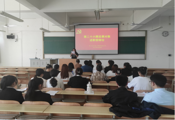 在自我答辩环节,发展对象就个人基本情况、入党动机、个人思想发展变化过程、所获荣誉奖励等方面进行简要介绍。在评委提问环节,各位老师就关于党的性质、宗旨、指导思想、党员的权利和义务、习近平新时代中国特色社会主义思想、社会主义核心价值观、党的基本路线、党的二十大精神等内容和学生如何提高角色意识、履行自身职责,正确处理好学习和工作的关系、如何处理好打游戏问题、如何处理好宿舍矛盾,如何处理好个人与集体的关系等方面展开提问,进一步考察了学生的思想政治素质、对中国共产党的认识、对党的基本理论知识和时事热点的掌握程度。考察学生的工作能力和工作水平,不断端正学生的入党动机,为党组织选拔政治上可靠、专业上合格的新鲜血液。