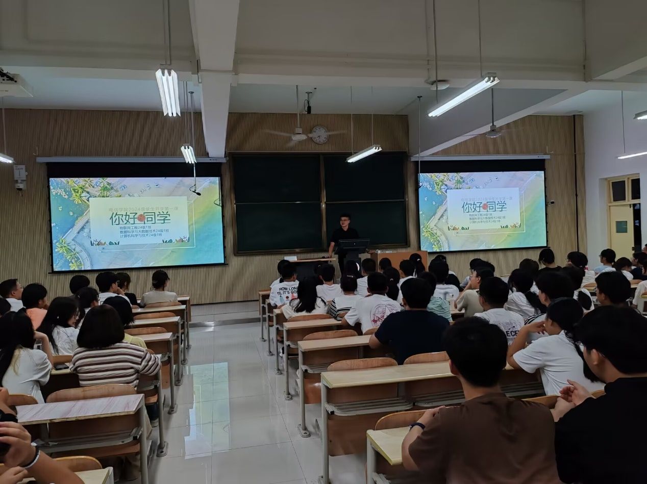 张宇航指出本科生教育不仅是专业知识的深化与拓展,更是实践能力、创新思维及问题解决能力的全面锤炼。他鼓励新生们要珍惜这段宝贵的时光,勇于挑战自我,不断探索未知领域。会上,张宇航围绕校园安全知识、校园生活适应、防诈反诈知识、校园生活常识四个方面的内容,通过具体事例展开详细、生动地讲解,教育引导广大同学在积极融入校园生活、树立崇高理想、建立积极心态、培养自我管理能力的同时提高自我保护意识、增强自我保护能力。