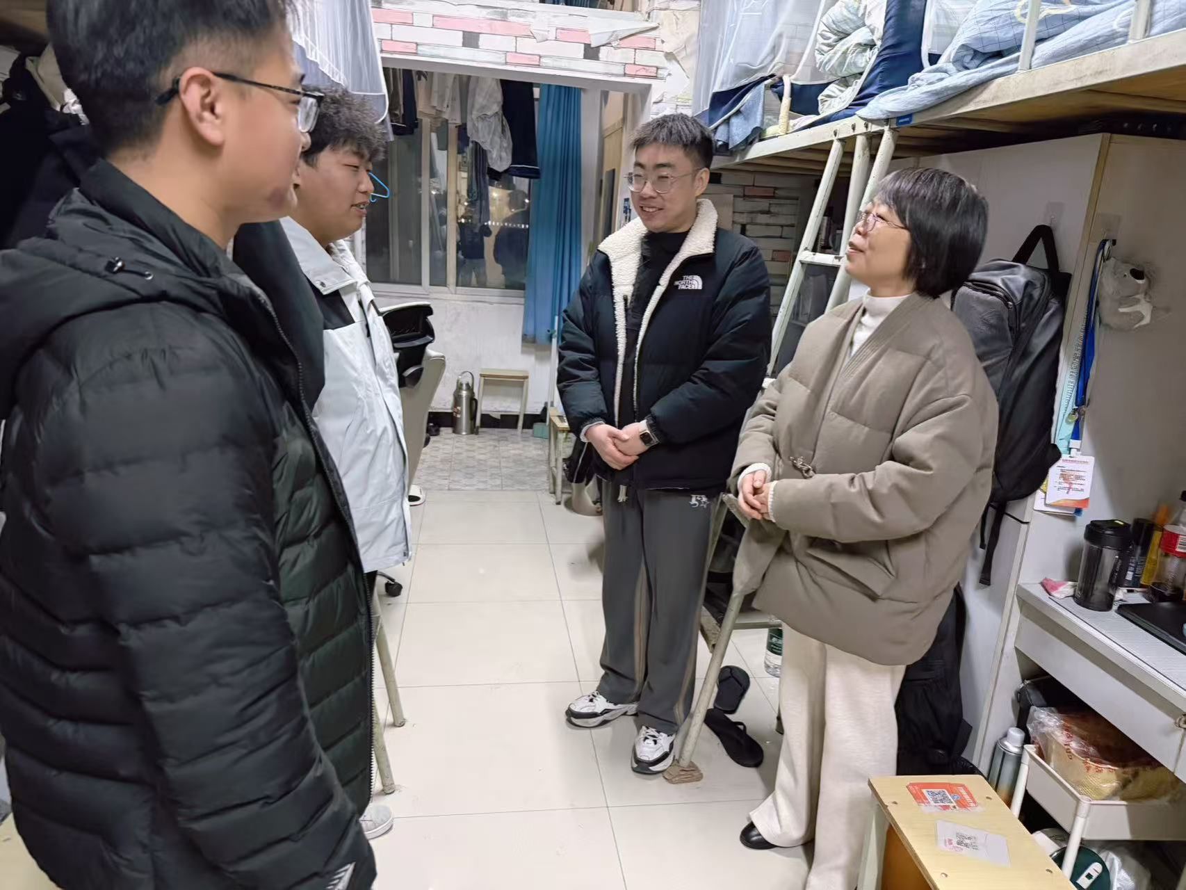 新学期伊始,为及时了解学生的学习生活状况,传递学院的关怀与温暖,beat365正版唯一官网必一党总支书记于咏梅带领全体辅导员,于2月16日晚深入学生宿舍,开展了走访慰问活动。