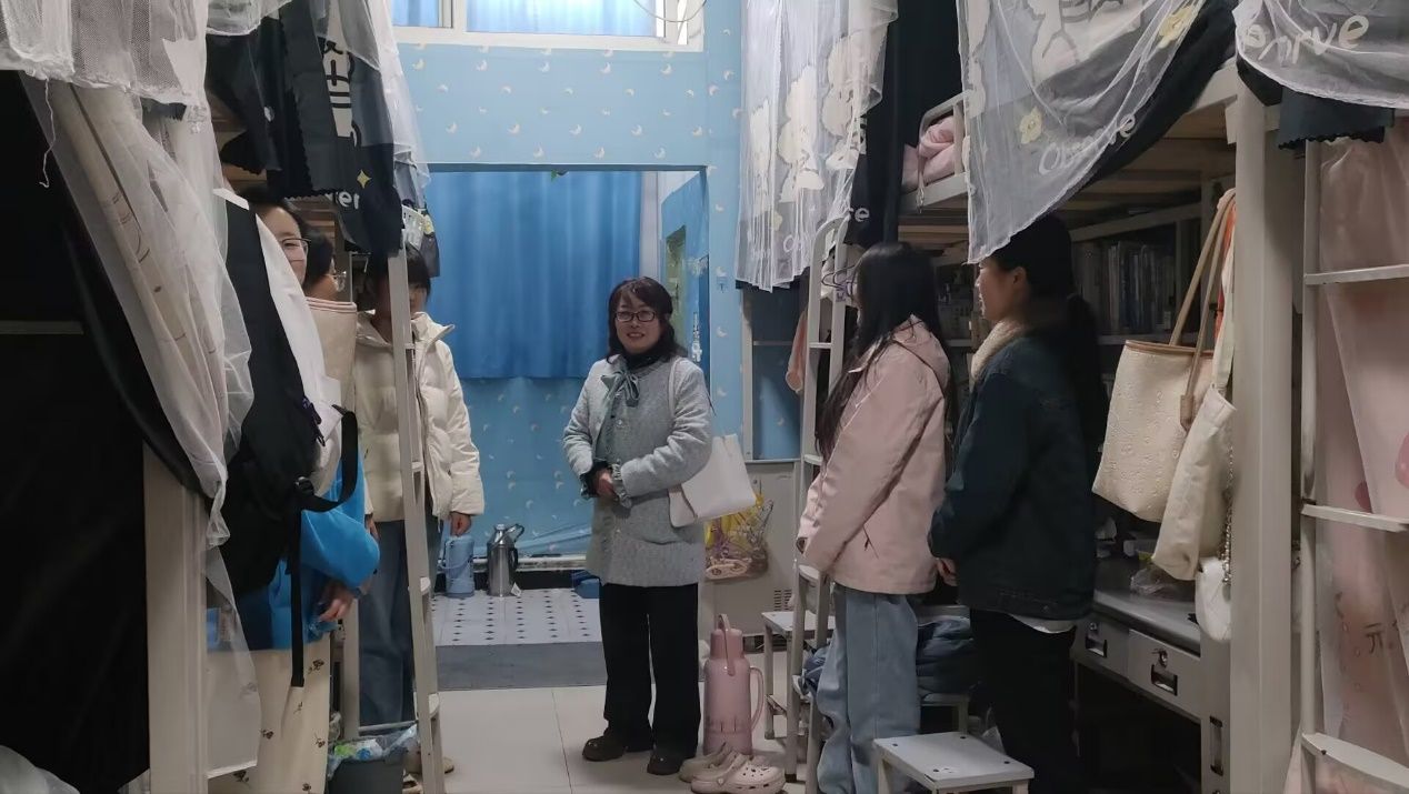 在交流过程中,于咏梅还特别强调了安全教育的重要性。她结合校园安全管理要求,重点检查了宿舍的用电安全、卫生环境等情况,并提醒同学们要强化安全意识,杜绝使用违规电器,谨防电信网络诈骗等安全隐患。辅导员们则通过真实案例为同学们讲解了防盗、防骗技巧,强调了“安全无小事,责任重于山”的道理。