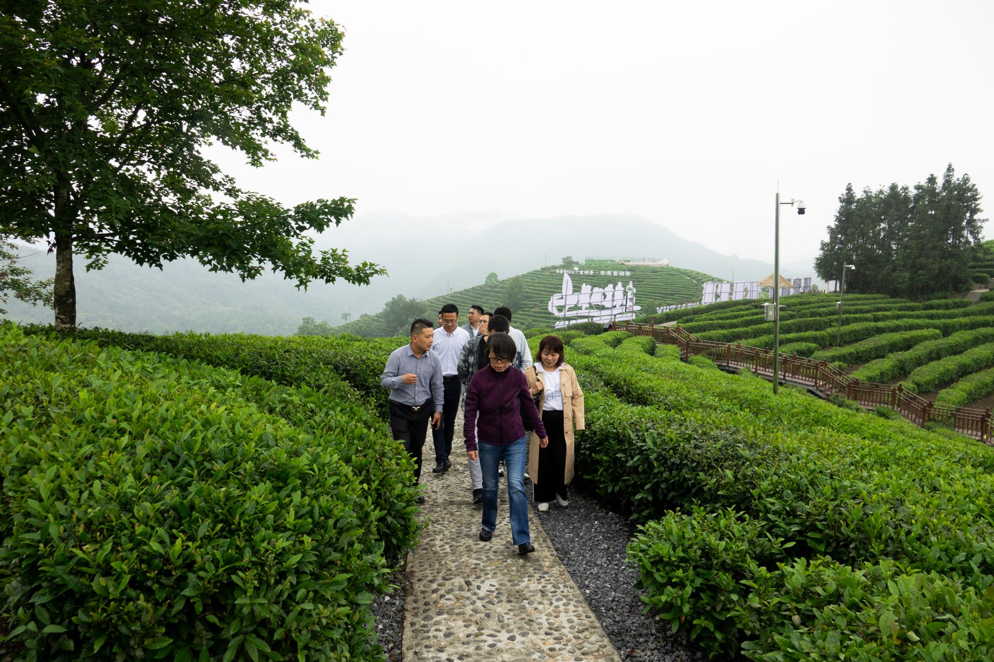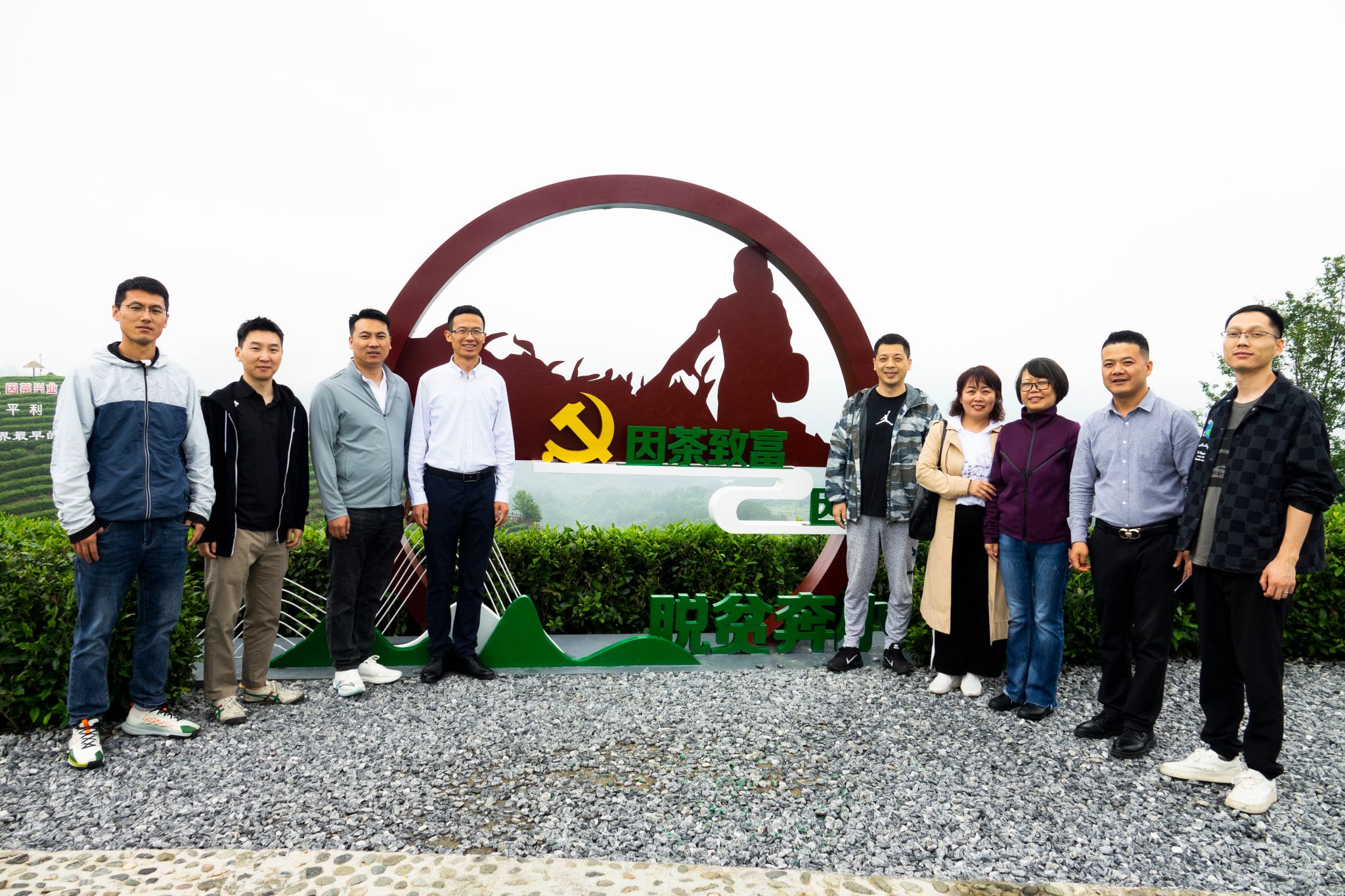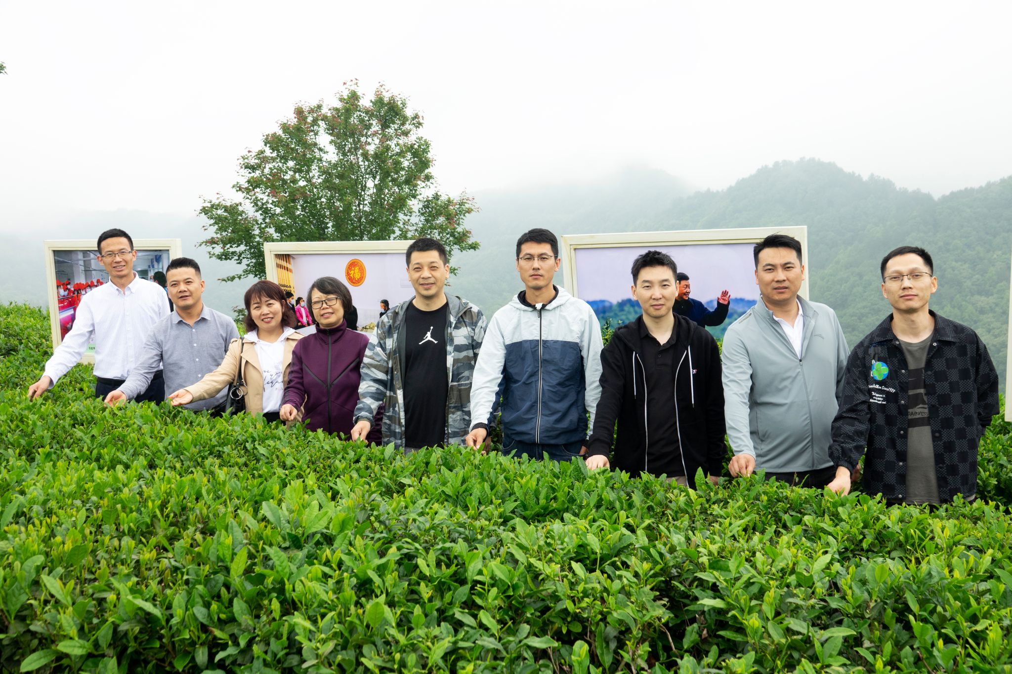 5月27日中午,雨后的平利县蒋家坪茶山,云蒸雾绕,犹如仙境。笼罩茶山的云雾还未散去,beat365正版唯一官网必一2013、2014、2016届校友孙小明、吉明超、寇强、净小刚、许赢政、姬一波等六人在学院党总支书记于咏梅、组织委员成英丽、学工办主任石纭昊的陪同下,来到这里。放眼望去,一排排修剪整齐的茶树、随处可见的游人、壮丽锦绣的青山,构成了一幅山乡巨变的喜人画面。大家在景区讲解员的带领下,沿着习近平总书记考察路线,参观了蒋家坪村女娲凤凰茶叶现代示范园,聆听了习近平总书记考察园区时同茶农们亲切交谈的故事。