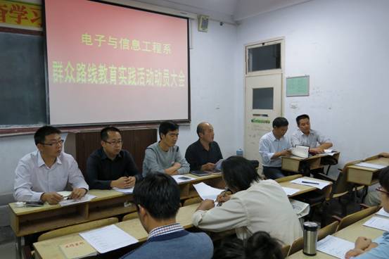 2013年9月28日晚,电子与信息工程系在江南校区1214教室召开“群众路线教育实践活动”动员大会。学校“群众路线教育实践活动”督导屈险峰主任、数学系教师刘铁,系领导及全体教职工参加会议。会议由系总支书记李红兵主持。