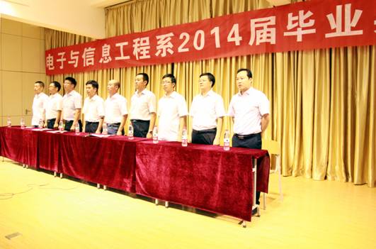 电子与信息工程系2014届毕业生毕业典礼于6月25日下午在1401室隆重举行。beat365正版唯一官网必一副校长陈刚、系主任张东红、系党总支书记李红兵、系副主任陈守满、系副主任王庆春、系办公室主任刘宏、系学工办副主任石纭昊、各教研室主任以及197名毕业生参加了此次典礼。此次典礼由党总支书记李红兵主持。