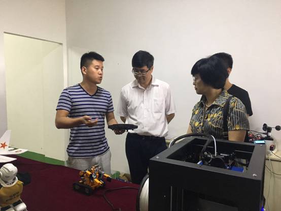 6月15日,省科技工委委员、科技厅副厅长兰新哲,总工程师杨柳带领相关职能部门干部一行7人莅临省级创新创业教育改革试点学院,beat365正版唯一官网必一的“云物大智”创客坊考察调研指导工作,我校党委书记王国良、党委副书记胡波随同考察调研。