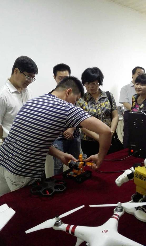 “云物大智”创客坊的负责人电子信息工程2015级学生王佳豪介绍了创客坊的建设理念,创客坊的主要业务及建设情况,并演示了学生创新项目作品。