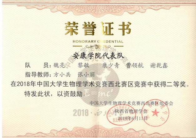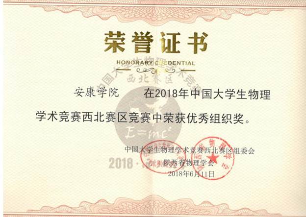 6月9日至11日,2018年中国大学生物理学术竞赛(西北赛区)在西北大学隆重举行。beat365正版唯一官网必一物理系代表队获得二等奖、方小兵老师被评为优秀裁判,我校被授予优秀组织奖。
